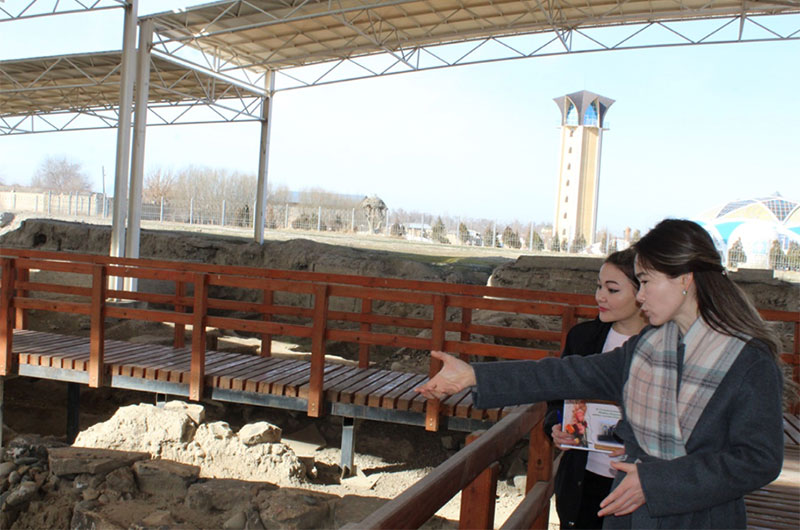 Қазақстан Республикасының Мәдениет және спорт министірлігіне қарасты «Ежелгі Тараз ескерткіштері» мемлекеттік тарихи-мәдени музей-қорық қызметкерлері онлайн форматта «Ш.Уәлиханов атындағы Жамбыл облыстық ғылыми кітапханасына» арнайы экскурсия жүргізді. Экскурсия бағыты Жамбыл жерінің жауһарларына сән беріп тұрған Қарахан және Дәуітбек кесенелерімен басталып, Әулие-Ата мешіті арқылы өтті. Сондай-ақ, оларға Ұлы Жібек жолындағы қаланың ортағасырлық өркендеу кезеңіне жататын ежелгі Тараз қаласының орталық бөлігінен табылған бірегей артефактілерді көруге мүмкіндік алып, жүргізілген археологиялық қазбалар туралы мазмұнды ақпаратты тыңдап, "Көне Тараз"археологиялық саябағы үлгісінде Ежелгі Тараз қаласының тарихымен танысты.