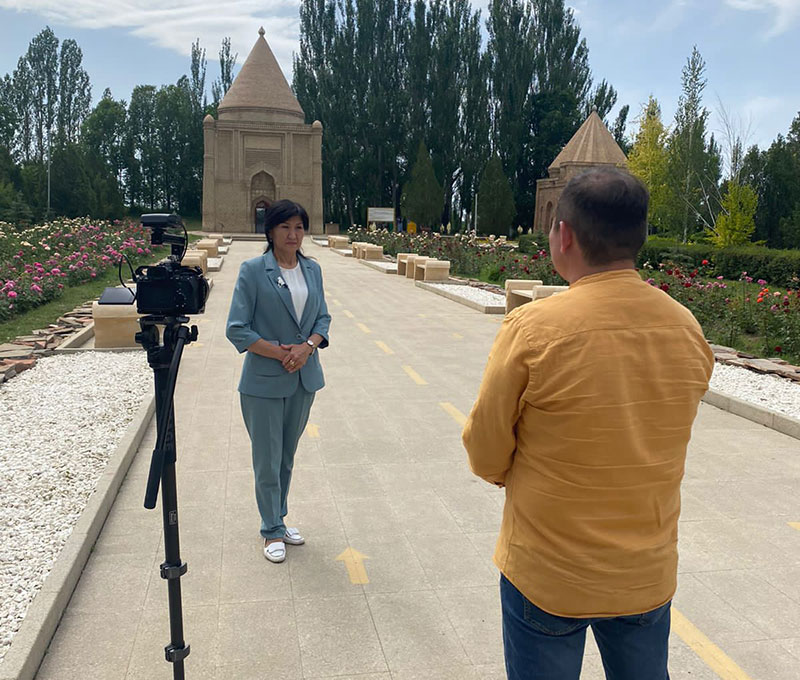 «Қазақпарат» халықаралық ақпарат агенттігі» АҚ ұйымдастыруымен «Ұлттық рухани жаңғыру» жобасы, «Қазақстан тарихы» интернет-жобасы, Алтын Орданың 750 жылдығына орай экспедиция өткізілуде. Түсірілім барысы ҚР Мәдениет және спорт министірлігі Мәдениет комитетінің «Ежелгі Тараз ескерткіштері» мемлекеттік тарихи-мәдени музей-қорығына қарасты «Қарахан», «Айша бибі», «Тектұрмас» кесенелері, «Ақыртас сәулет – археологиялық кешені», «Баласағұн» қалашығында жүргізілуде.Түсірілімнің басты мақсаты көне дәуірлердің естелігі, адамзат мәдениетінің биігінде айтарлықтай орны бар, екі мың жылдан астам тарихы бар қасиеті мен өсиеті қатар өрілген Тараз қаласының тарихымен таныстыру.Сұхбат барысында музей қызметкерлері тарихы тереңнен тамыр тартатын Әулиеата өңірінде орналасқан тарихи нысандардың құрылысы, тарихы туралы баяндап берді.