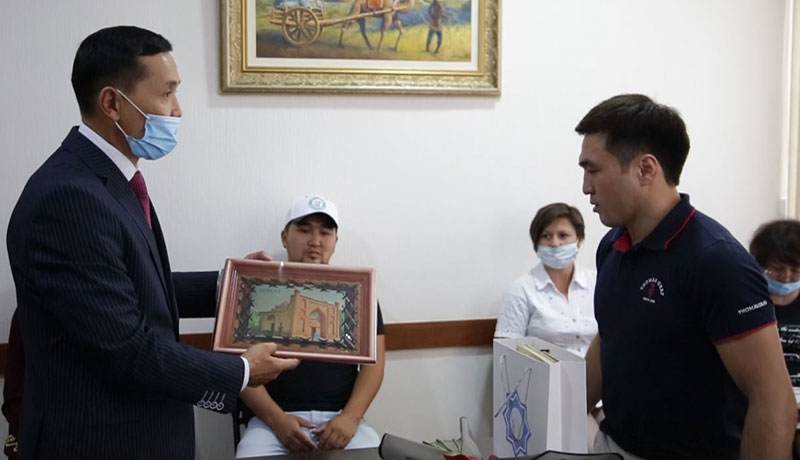 Өз кезегінде чемпион қорық-музейінің қызметкерлеріне көңіл бөліп, қолдау көрсеткені үшін алғысын білдірді, қызметкерлерге тарихи-мәдени мұраны насихаттауда одан әрі табыстар тіледі. Ізгі тілектерін қорық- музейінің тілек кітабына қалдырды. Әулие ата атанған Қарахан бабамыздың кесенесіне барып, батасын алды.