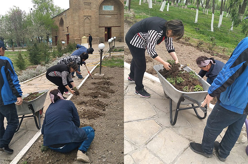 Көктеп, айнала түрті-түсті түске еніп, табиғат жарқын бояуларға боялатын,тіршілік бойына қан жүгіретін шақта "Ежелгі Тараз ескерткіштері" тарихи-мәдени қорық-музейінің қызметкерлері тазалық жұмыстарын жалғастыруда. Бүгін музейге қарасты нысандар аумағында гүл отырғызу, санитарлық тазалау, тал түптерін балақтау, арықтар жүйелерін тазарту, күл- қоқыстан тазарту жұмыстары жүргізілді.