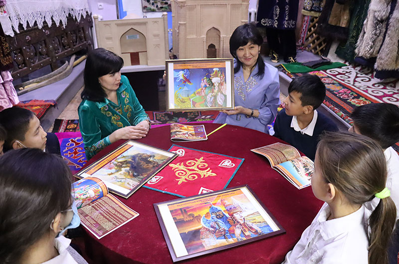 Байзақ ауданының орта мектеп білім алушыларына музейдің этнографиялық бөлімінде арнайы аңыз-әңгімелер топтастырылған «Киелі Әулиеата жерінің аңыздары» атты жинағы оқушыларға музей-қорығының ғылыми қызметкері Л.Тілепалдиева баяндады.Сонымен қатар экскурсавод Б.Тасыбаева археологиялық көрмедегі көне Тараз шаһарынан табылған бірегей жәдігерлердің тарихымен таныстырды.