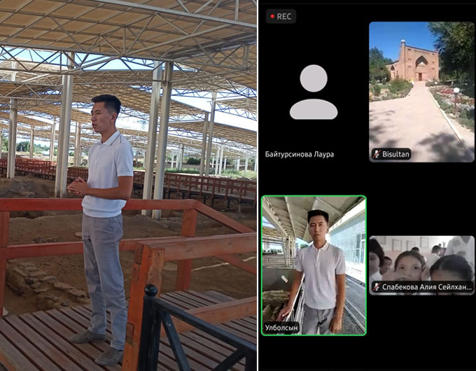 "Ежелгі Тараз ескерткіштері" мемлекеттік тарихи-мәдени музей-қорығының "Музей ісі және экскурсиялық қызмет көрсету" бөлімінің экскурсоводтары 1 қыркүйек- Білім күніне орай, Шымкент қаласының №43 жалпы орта мектебінің 6-сынып оқушыларына "Білімге ұмтылу, еңбексүйгіштікке және отаншылдыққа тәрбиелеу" тақырыбында онлайн-экскурсия ұйымдастырды. Онлайн-экскурсия барысында оқушыларға Республикалық маңызы бар "Ежелгі Тараз" қалашығының, "Қарахан" мен "Айша бибі" кесенелерінің тарихымен таныстырды.