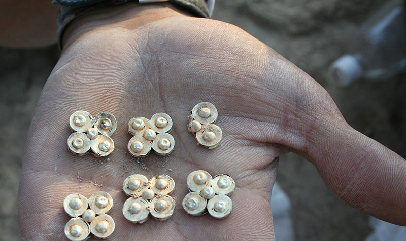 Ежелгі Тараз қалашығынан археологиялық қазба жұмыстары барысында металдан жасалған артефактілер де орта ғасырлар тарихынан сыр шертеді. Сонау мың жыл бұрынғы көздің жауын алатын алтын, күмістен жасалған түрлі білезіктер, сырғалар, асыл тастармен көмкерілген жүзіктерден құралған зергерлік бұйымдар ортағасырлық қолөнердің, мәдениеттің дамығандығының айғағы. Археологиялық зерттеулердің нәтижелері зергерлік өнердің өте ерте кезден-ақ жоғары деңгейдегі болғанын дәлелдеп берді. Зергерлік өнер заман, өмір ағымымен қашан да бірге туындап отырған күрделі де бейнеті мол сала қолөнері зергерліктің дамығанын көрсететін «Ежелгі Тараз ескерткіштері» мемлекеттік тарихи-мәдени қорық-музейі қорында Ежелгі Тараз қалашығынан табылған зергерлік бұйымдар сақтаулы тұр. Зергерлік бұйымдар оймыш, ширатпа, қалыптама, бедерлеме тәсілдері арқылы жасалған. Көркемдік шеберлікпен нақышталуы жағынан музей қорындағы алтын-күмістен жасалған зергерлік бұйымдар ерекше сипатты. Зергерлік әшекей бұйымдардың бірі кемер белбудің ерлерге де әйелдерге де арналған түрлері бар. Безендірілуі және соғылуы мен нақышталуына орай кімдер таққанын ажыратуға болады.