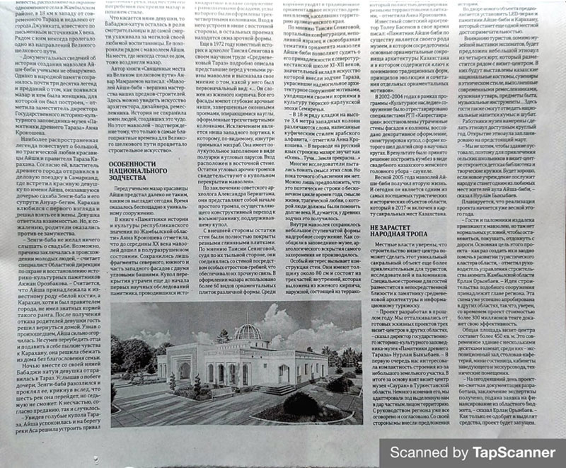 На страницах республиканской газеты "Казахстанская Правда" была опубликована статья на тему "Храм вечной любви". (18 февраль 2022 год №34(29661)).