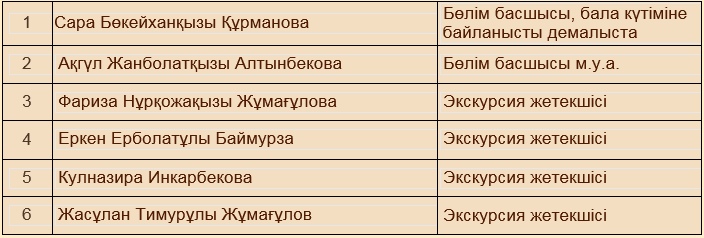 «Музей ісі және экскурсиялық қызмет көрсету бөлімі»