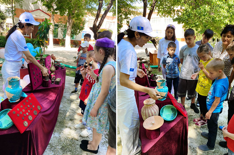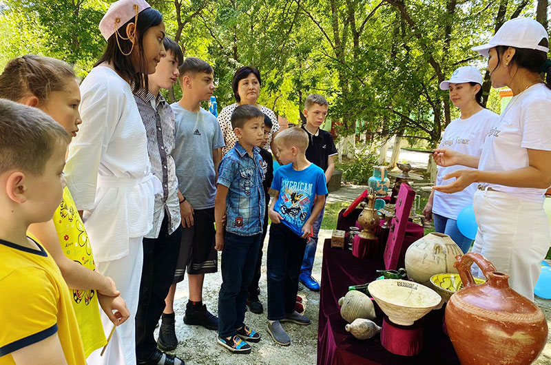 Археологиялық жәдігерлерден жасақталған көрмеде күнделікті тұрмыста қолданылатын ыдыстар, IX-XIII ғасырға жататын қыш құмыралар,қола, қыш шырағдандар және т.б экспонаттар балалардың назарына ұсынылды. Артефактілерді көрген балалар музей-қорық қызметкерлерінен қызықтырған сұрақтарына мазмұнды жауаптар алды.