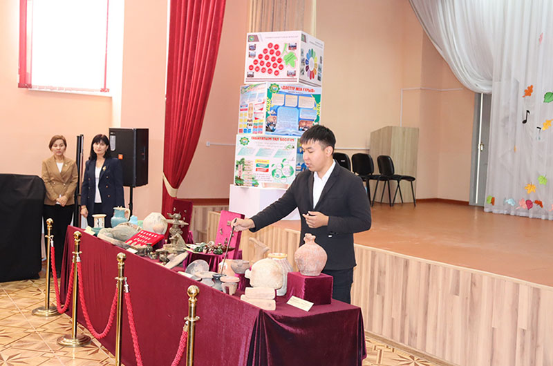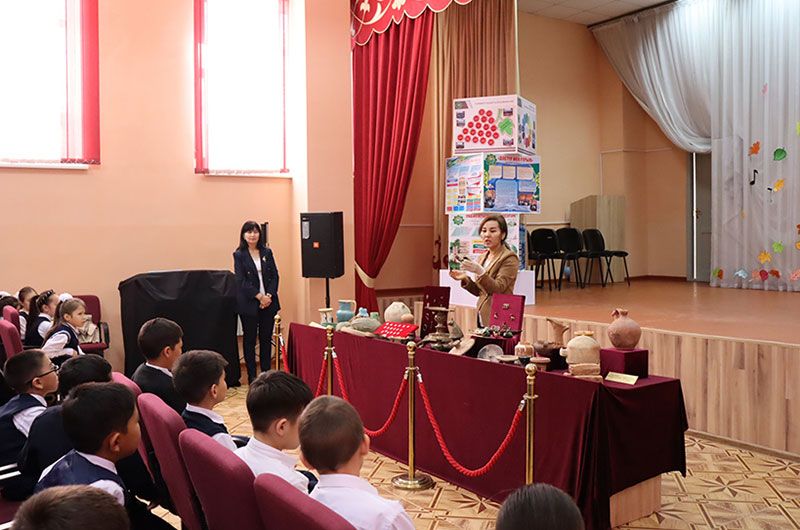 Қазақстан Республикасының Мәдениет және спорт министірлігіне қарасты «Ежелгі Тараз ескерткіштері» мемлекеттік тарихи-мәдени музей-қорығының қызметкерлері Керімбай атындағы №12 мектеп-гимназиясында «Ұлы дала кеңістігінің өткені мен бүгінінен сыр шертетін құнды мұралар» тақырыбында жылжымалы көрме өткізді. Жылжымалы көрме барысында Көне Тараз қалашығынан табылған ортағасырлық жәдігерлер таныстырлып, өскелең ұрпаққа Жамбыл облысының тарихи-мәдени ескерткіштеріне тарихи шолу жасалды. Сондай-ақ оқушылар назарына археологиялық қазба жұмыстары нәтижесінде Тараз қалашығынан табылған құнды жәдігерлер ұсынылды. Атап айтсақ, әр кезеңде басылған тиындар, мөр-таңбалар, көптеген құнды тарихи жәдігерлер: қазандар, табақтар, құмандар, шырағдандар, құмыралар сияқты заттардың тарихымен танысты. Құнды жәдігерлерді ұрпақтан-ұрпаққа жеткізіп, насихаттау және дәріптеу жұмыстарын жүргізу басты мақсат болып табылады. Мектеп ұстаздары мен оқушылары жылжымалы көрмеден алған әсерлерін таңданыспен жеткізе отырып, музей ұжымына алғыс білдірді.