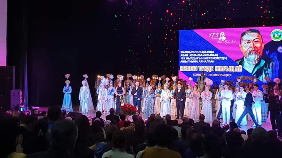 Концерттік бөлімде Абайдың өмір белестері сомдалып, шығармаларынан қара сөздер мен әндер орындалды.