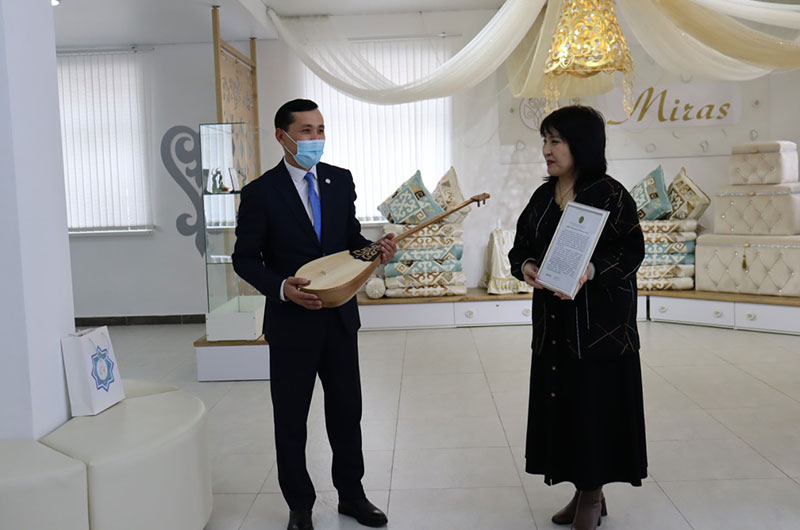 «Анаға тағзым» орталығының директоры Эльмира Мырза-Ғалиді Қазақстан Республикасының Мәдениет және спорт министірлігінің атынан музей-қорығының директоры Бықыбаев.Н.Д Қазақстан Республикасының Тәуелсіздігінің 30-жылдығымен құттықтап, орталықтың арнайы үйірмелерінің бірі «Қазына» ұлттық аспаптар сыныбының оқушыларына домбыралар табыстады. Орталық басшысымен қызметкерлері өз тарапынан ризашылықтарын білдірді. Іс-шара барысында үйірме мұғалімі домбырамен ән айтып, үйірме оқушысы мәнерлеп өлең оқыды.