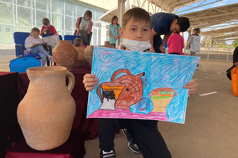 Ана тілінді құрметтеу, өз өлкенді сүюден басталады демекші "Мектептен тыс жұмыс және балалар шығармашылығы орталығы" КММ-нің "Шұғыла" бейнелеу өнері студиясының оқушылары «Көне Тараз» ашық аспан астындағы археологиялық саябағында табылған жәдігерлерді бейнелеген суреттерін аяқтап, әрбір жәдігерлердің ғылыми сипаттамасымен қайта таныса, ежелгі Тараз шаһарының тарихынан тереңірек сыр шертті. Қорық-музей қызметкерлері жас дарындарға ана тілін,мәдениетін сүюге және өз жерінің патриоттары болуға,сондай-ақ оқуда және шығармашылықта табыс тіледі!