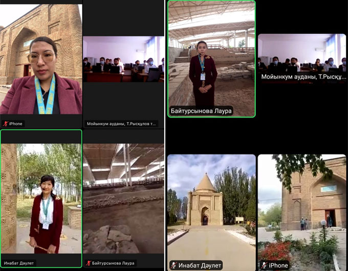 Жамбыл облысы, Мойынқұм ауданы, Тұрар Рысқұлов атындағы орта мектеп білім алушыларына «Ұлы Дала елі Тәуелсіздіктің 30 негізі» акциясы аясында «Тәуелсіздік-ұлт мақтанышы» атты («Zoom» платформасы арқылы) онлайн экскурсия жүргізілді. «Ежелгі Тараз ескерткіштері» тарихи-мәдени қорық-музейінің қызметкерлері білім алушыларға тарихи-мәдени мұраларымызды насихаттай отырып,ежелгі қала, үлкен руханият орталығы болған Тараз шаһарының тарихымен және археологиялық қазба жұмыстары нәтижесінде табылған бірегей құнды экспонаттарды көрсетіп, сипаттамларына тоқталып, таныстырды. Онлайн форматта өткізілген экскурсияға ортағасырдың інжу-маржаны «Айша бибі», Әулие ата атанған «Қарахан» кесенелері, шаһардың шырайын кірігізіп, ажарын ашып тұрған «Көне Тараз» этномәдени кешені назарларына ұсынылды. Экскурсия оқушылардың қызығушылығын тудырды, олар ежелгі Тараздың тарихы туралы қызықты және мазмұнды дәріс тыңдады. Музей қызметкерлері балаларды өз өлкесін сүюге, оның бай тарихын білуге және өз елінің патриоты болуға шақырды.