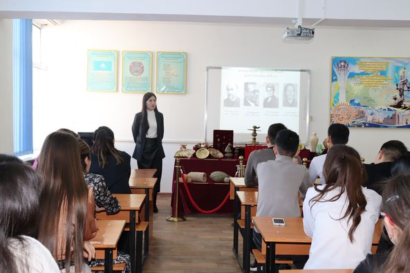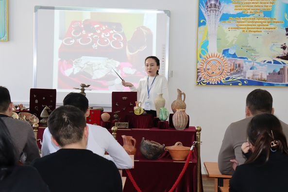 Сондай-ақ, студенттер назарына археологиялық қазба жұмыстары нәтижесінде табылған жәдігерлер ұсынылды. Атап айтсақ, әр кезеңге жататын мәдени қабаттан табылған қыш бұйымдары мен металдан жасалған бұйымдардың мерзімін, жасалу техникасы мен пайдалану мақсатын түсіндірді.