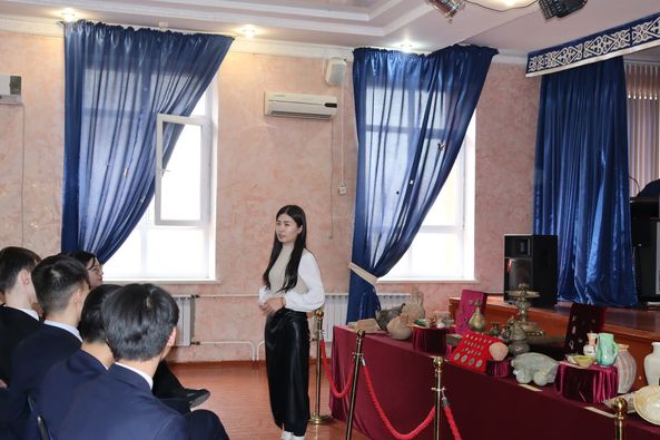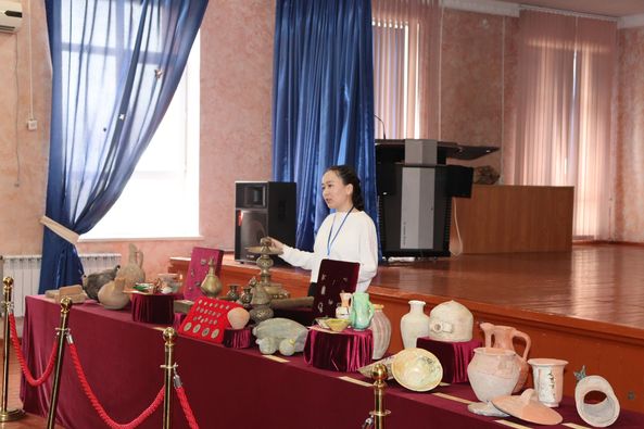 Оқушылар назарына археологиялық қазба жұмыстары нәтижесінде табылған жәдігерлер ұсынылды. Атап айтсақ, әр кезеңге жататын мәдени қабаттан табылған қыш бұйымдары мен металдан жасалған бұйымдардың мерзімін, жасалу техникасы мен пайдалану мақсатын түсіндірді.