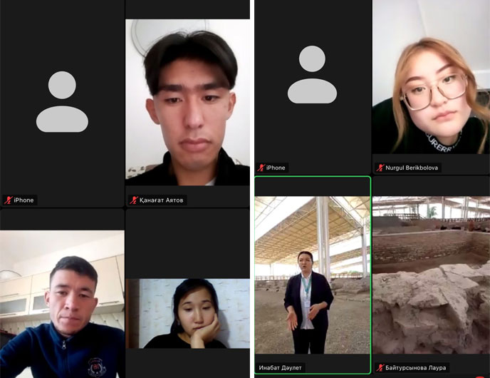 Әл-Фараби атындағы Қазақ ұлттық университетінің «Музей ісі және ескерткіштерді қорғау» мамандығының 3-4 курс студенттеріне «Ұлы Дала елі Тәуелсіздіктің 30 негізі» акциясы аясында «Тарихты жаңартқан Тәуелсіздік-Көне Тараз қалашығы» тақырыбында бейнеэкскурсия жүргізілді. «Ежелгі Тараз ескерткіштері» тарихи-мәдени қорық-музейінің қызметкерлері білім алушыларға тарихи-мәдени мұраларымызды насихаттай отырып,ежелгі қала ,үлкен руханият орталығы болған Тараз шаһарының тарихымен және археологиялық қазба жұмыстары нәтижесінде табылған бірегей құнды экспонаттарды көрсетіп, сипаттамларына тоқталып, таныстырды. Бейнеэкскурсия студенттердің қызығушылығын тудырғаны хақ, олар дәрісті сүйсіне тыңдай отырып, қызықтырған сұрақтарына музей қызметкерлерінен мазмұнды жауаптар алды. Болашақта қорық-музейінде іс тәжірбиеден өткілері келетіндігің айтып, алғыстарын білдірді.