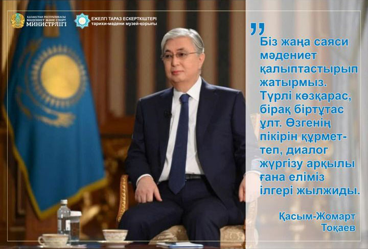 Ел бірлігіне сызат түспей, халқының амандығы үшін қандай да бір батыл шешім қабылдай білетін Мемлекет басшысын – Президентіміз Қасым-Жомарт Кемелұлы Тоқаевті біз, «Ежелгі Тараз ескерткіштері» мемлекеттік тарихи-мәдени музей-қорық ұжымы әркез қолдаймыз. Оның жасампаз бастамалары мен елдің көңілінен шығатын шешімдері бізге рух беріп, қанаттандырады.