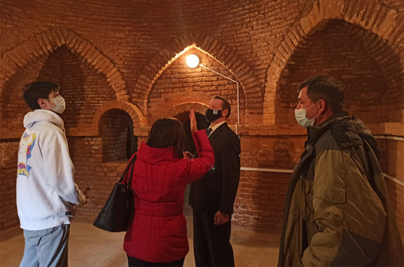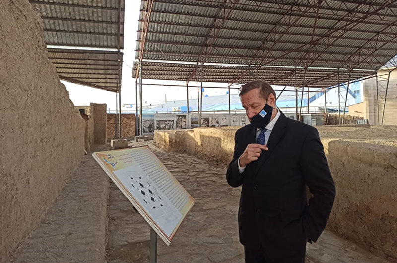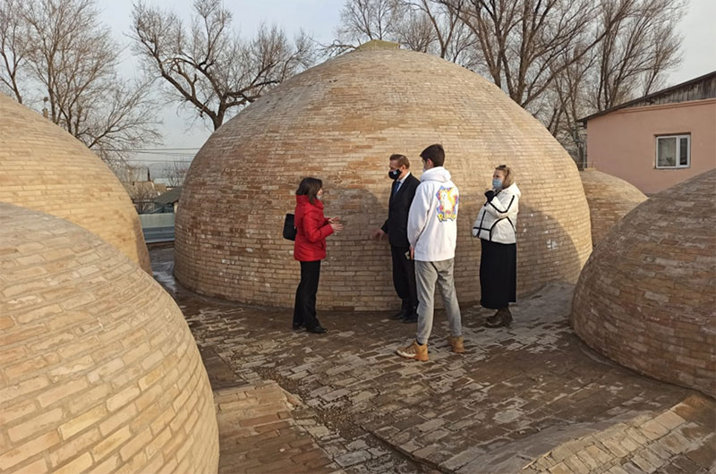 В рамках рабочего визита в г. Тараз руководитель Представительства Россотрудничества в Казахстане, директор Российского центра науки и культуры в г. Нур-Султане Алексей Анатольевич Коропченко посетил историко-культурные объекты Государственного историко-культурного заповедника-музея «Памятники древнего Тараза». В ходе экскурсии гость был ознакомлен с памятниками - шедеврами средневекового зодчества периода Караханидов – мавзолеями Карахана и Айша биби, он посетил этно-культурный комплекс Тектурмас, восточную баню Кали Юнуса, средневековую раннеисламскую мечеть. Алексей Анатольевич, впервые находясь в нашем городе отметил, что Тараз обладает колоссальным историко-культурным многовековым наследием и богатым туристическим потенциалом.