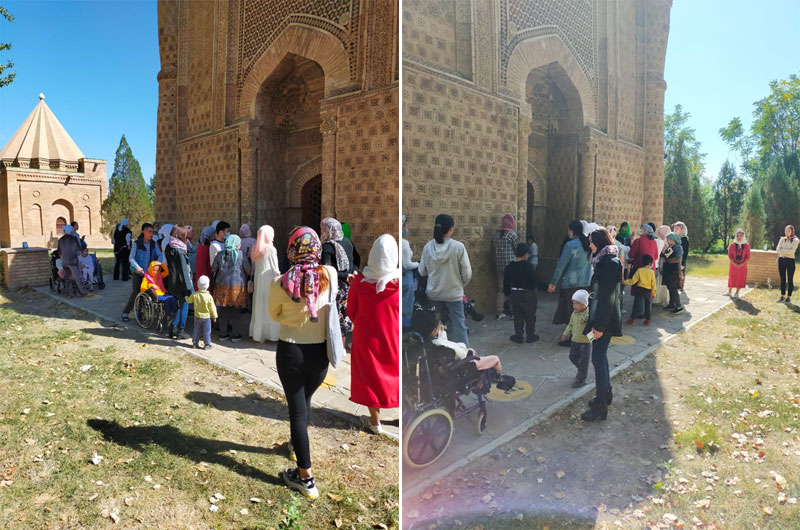 Балаларының шектеулі мүмкіндіктерін ескере отырып,экскурсия жүрізу барысында Қазақстанда ХІ ғасырдан сақталған сәулет өнері ескерткіші «Қарахан» кесенесінің тарихы, құрылысы, аңыз әңгімелері баяндалды. Сонымен қатар ортағасырдың інжу-маржаны атанған «Айша бибі» кесенесінің тарихымен де танысты. Балаларды Тараз қаласының ежелгі тарихы мен кесенелерге байланысты халық ертегілері мен аңыздары өте қатты қызықтырды.