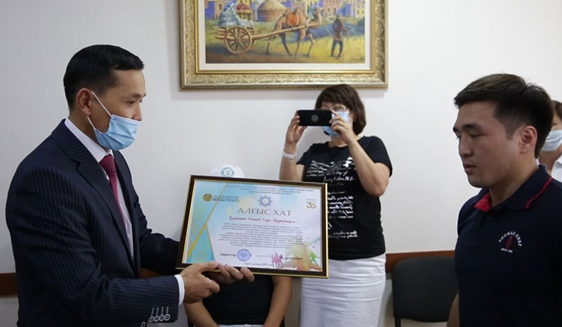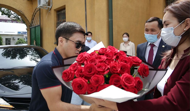 Өз кезегінде чемпион қорық-музейінің қызметкерлеріне көңіл бөліп, қолдау көрсеткені үшін алғысын білдірді, қызметкерлерге тарихи-мәдени мұраны насихаттауда одан әрі табыстар тіледі. Ізгі тілектерін қорық- музейінің тілек кітабына қалдырды. Әулие ата атанған Қарахан бабамыздың кесенесіне барып, батасын алды.