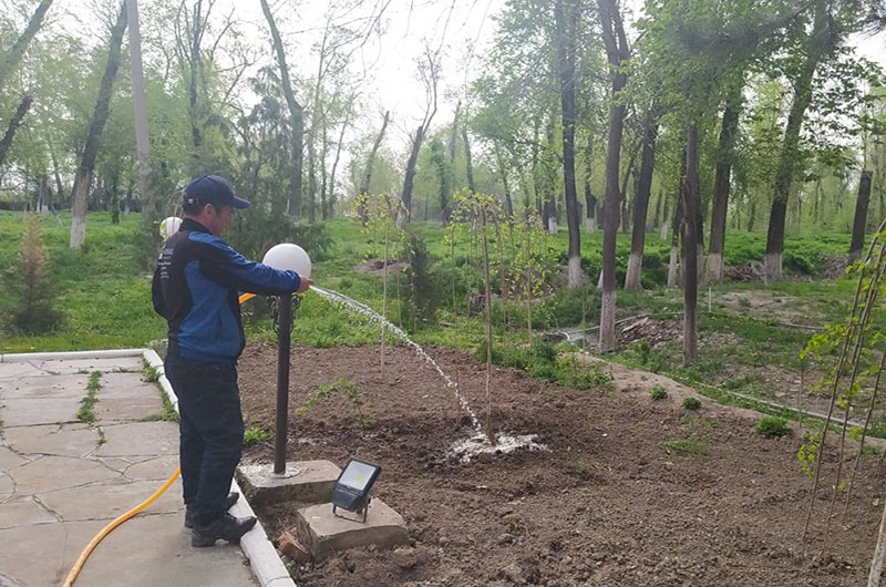 Көктеп, айнала түрті-түсті түске еніп, табиғат жарқын бояуларға боялатын,тіршілік бойына қан жүгіретін шақта "Ежелгі Тараз ескерткіштері" тарихи-мәдени қорық-музейінің қызметкерлері тазалық жұмыстарын жалғастыруда. Бүгін музейге қарасты нысандар аумағында гүл отырғызу, санитарлық тазалау, тал түптерін балақтау, арықтар жүйелерін тазарту, күл- қоқыстан тазарту жұмыстары жүргізілді.