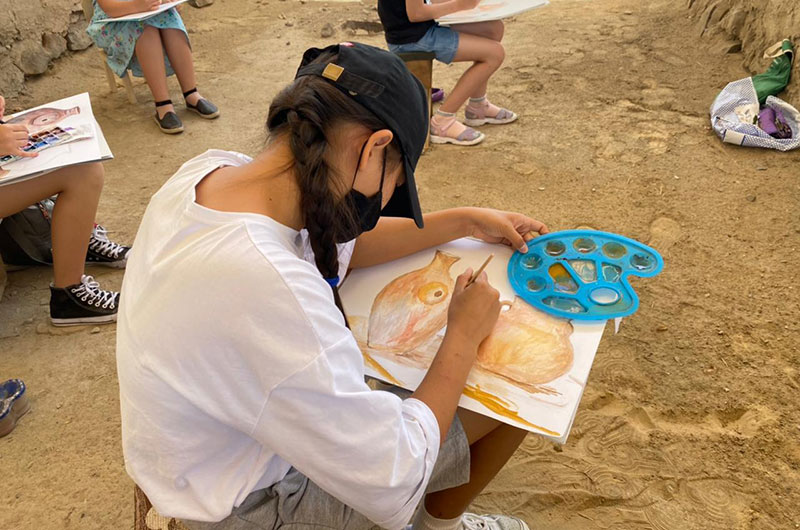 2021 жылдың 11 маусымында ҚР Мәдениет және спорт министрлігіне қарасты «Ежелгі Тараз ескерткіштері» мемлекеттік тарихи-мәдени қорық-музейінің ұйымдастырумен көненің көзіндей болған жәдігерлерді кеңінен насихаттау, өскелең ұрпақтың санасына сіңіру мақсатында «Тараз қаласы әкімдігінің білім бөлімінің мектептен тыс жұмыс және балалар шығармашылық орталығы» КММ оқушыларына арналған «Көне Тараз» ашық аспан астындағы археологиялық саябағында «Ежелгі тарихты суреттейміз» атты үйірме-сабағы өтті. Үйірме-сабақтың барысында жас суретшілер ортағасырлық қалашықтың қайта қалпына келтірілген бейнесімен таныса отырып, археологиялық қазба жұмыстарының нәтижесінде табылған қыш шеңберінде өрнектеліп жасалған көне жәдігерлердің бейнесін көркем суреттеп берді.