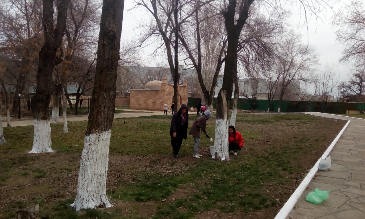 Бүгін Жамбыл политехникалық колледжінің бір топ студенттері Қазақстан Республикасы Мәдениет және спорт министрлігінің мемлекеттік «Ежелгі Тараз ескерткіштері» тарихи-мәдени қорық-музейіне қарасты Қарахан кесенесі аумағында тазалау және көгалдандыру жұмыстарын жүргізді.
