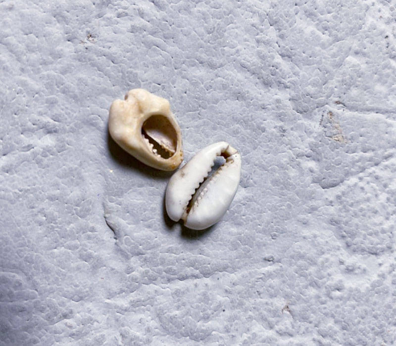 Ұлы Жібек жолының бойында орналасқан Тараз деп аталатын ортағасырлық қала орындарындағы қазба жұмыстары кезінде сауда керуендері арқылы басқа құрлықтардан тасымалданған  көптеген әшекей бұйымдардың табылуы. Соның ішіндегі ерекшесі жоғарыда айтып өтілгендей  каури әшекейі. Қала орындарынан алынған олжалар Ежелгі Тараз ескерткіштері тарихи-мәдени қорық музейінің  жәдігерлер қорында сақтаулы.