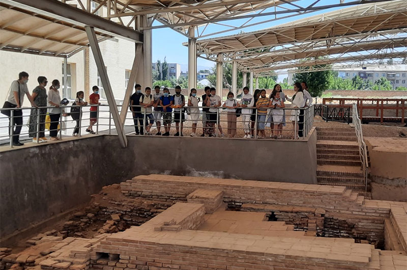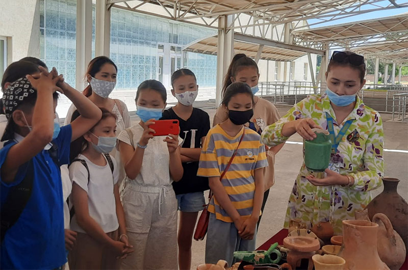 «Ежелгі Тараз ескерткіштері» мемлекеттік қорық-музейі қызметкерлері жазғы уақытта орта мектеп оқушыларының бос уақытын тиімді де рухани өтуіне жағдай жасау мақсатында №45 Б.Момышұлы атындағы қазақ классикалық гимназиясының оқушылары үшін Қазақстан Республикасы Мәдениет және спорт министрлігінің «Ежелгі Тараз ескерткіштері» мемлекеттік тарихи-мәдени қорық-музейінің қызметкерлері «Көне Тараз» аумағында археологиялық көрме өткізіп, танымдық экскурсия жүргізілді. Экскурсия барысында оқушылар туған өлкенің тарихына және бірегей экспонаттарға деген шынайы қызығушылықтарын білдірді.