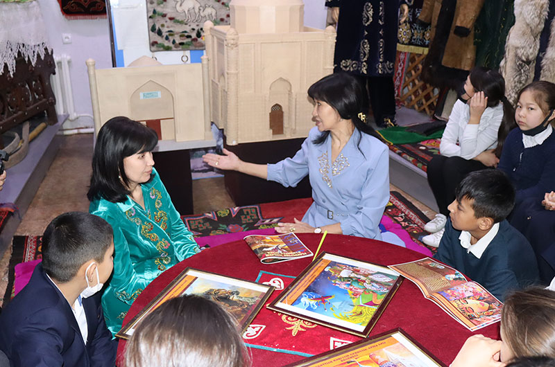 Байзақ ауданының орта мектеп білім алушыларына музейдің этнографиялық бөлімінде арнайы аңыз-әңгімелер топтастырылған «Киелі Әулиеата жерінің аңыздары» атты жинағы оқушыларға музей-қорығының ғылыми қызметкері Л.Тілепалдиева баяндады.Сонымен қатар экскурсавод Б.Тасыбаева археологиялық көрмедегі көне Тараз шаһарынан табылған бірегей жәдігерлердің тарихымен таныстырды.