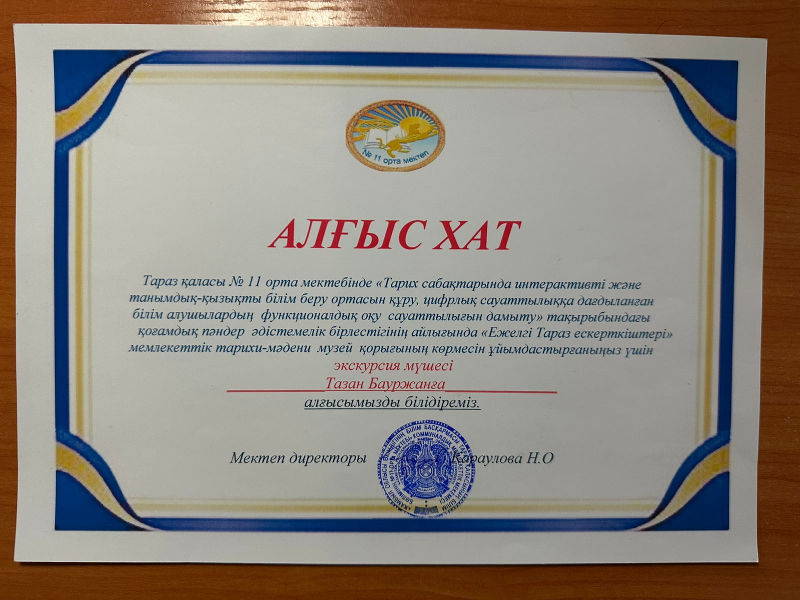 «Ежелгі Тараз ескерткіштері» мемлекеттік тарихи-мәдени музей-қорығының қызметкерлері №11 орта мектебінің оқушыларына «Келешектің тұтқасы – білімді ұрпақтар» тақырыбында жылжымалы көрме жасақтады. Ескерткіштердің құндылығын әрі мән-мағынасын музей-қорық мамандары айтып түсіндірді.