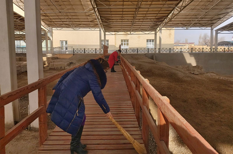 Бүгін "Ежелгі Тараз ескерткіштері" тарихи-мәдени музей-қорығының қызметкерлері «Қарахан», «Дәуітбек Шамансұр», «Айша бибі», «Бабаджа Хатун» кесенелерінде және «Көне Тараз» археологиялық паркі аумағында санитарлық тазалау, арықтар жүйелерін тазарту, күл-қоқыстан тазарту жұмыстарын жүргізді.