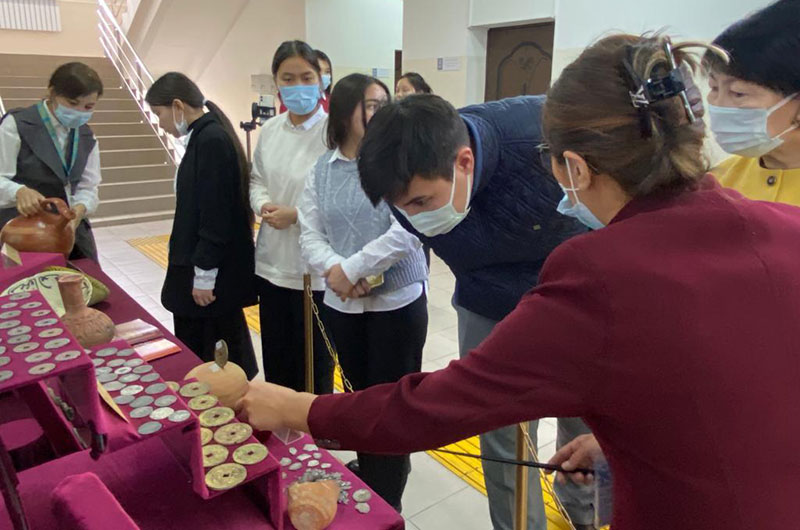 15 қараша - ҚР Ұлттық валюта күніне орай, “Ежелгі Тараз ескерткіштері” мемлекеттік тарихи-мәдени қорық-музейінің ұйымдастыруымен ежелгі Тараз қалашығынан археологиялық қазба жұмыстарынан табылған нумизматикалық жәдігерлерден құралған көрмесін Тараз инновациялық жоғарғы колледжіне “Ұлттық теңге - ел тәуелсіздігінің символы” атты тақырыпта жылжымалы көрме ұйымдастырылды. Көрмеге 100-ден аса әртүрлі кезеңге жататын монеталар мен қыш бұйымдары қойылды. Әсіресе, түргеш, қарахан, саманид тиындары білімгерлердің қызығушылығын арттырды. Ұлы Жібек жолы бойындағы ақша айналымдары болғандығын дәлелдейтін жәдігерлер бүгін де музей қызметкерлері көздің қарашығындай сақтап, болашақ ұрпаққа жеткізіп отыр.