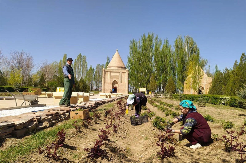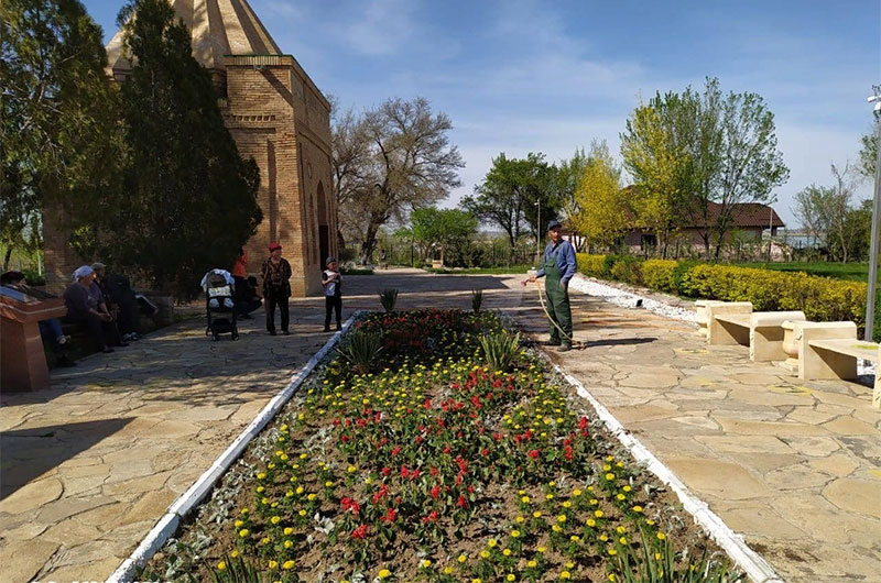 Қазақстан Республикасы Мәдениет және спорт министрлігіне қарасты «Ежелгі Тараз ескерткіштері» мемлекеттік тарихи-мәдени қорық-музейіне қарасты нысаны "Айша бибі" кесенесінің аумағында музей қызметкерлері көгалдандыру жұмыстарын жүргізді. Музей қызметкерлері санитарлық-карантиндік шараларын сақтай отырып, санитарлық тазалау, көгалдандыру жұмыстарын жалғастыруда.