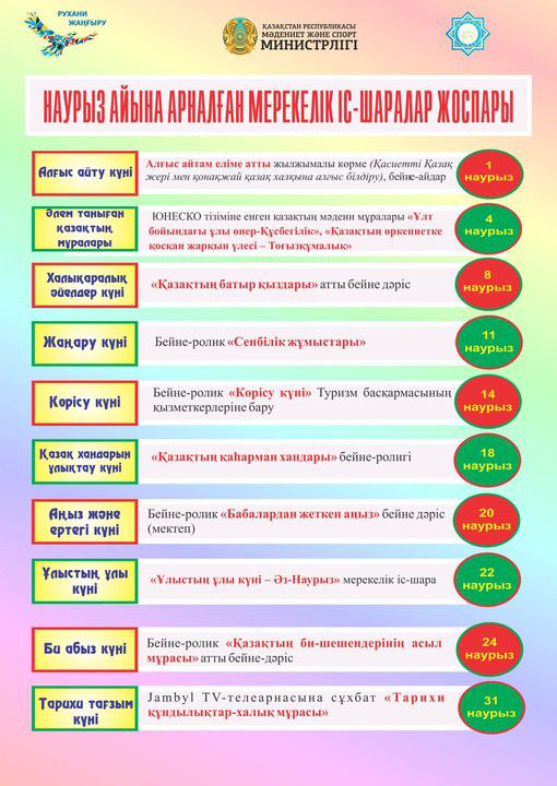 Наурыз айына арналған мерекелік іс-шаралар жоспары