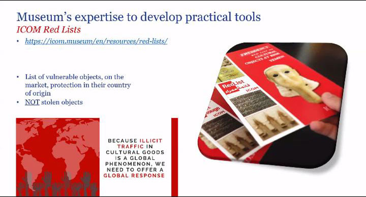 "Ежелгі Тараз ескерткіштері" тарихи-мәдени қорық-музейінің қызметкерлері 2021 жылы 19 тамызда Алматы уақыты бойынша 15:00-де "Мәдени құндылықтардың заңсыз айналымына қарсы күрес: Халықаралық музей қауымдастығының қатысуымен және ИКОМ іс-әрекеті" тақырыбында музей қызметкерлеріне арналған онлайн-вебинарға қатысты. Вебинар ағылшын және орыс тілдерінде ілеспе аудармамен онлайн форматта өтті.