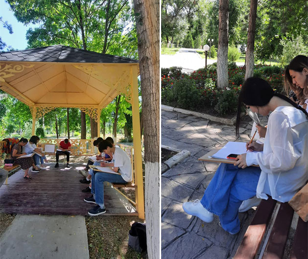 Жаңалықтар Пленэр практикасын өткізді 07.06.2022 М.Х.Дулати атындағы өңірлік университетінің білімгерлері «Сәулет білім беру бағдарламасы» бойынша пленэр практикасын қала орталығында орналасқан «Қарахан» кесенесінің аумағында өткізді. Бөлісу: