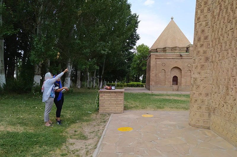 Назарбаев Университетінің студенттері Атика Аджар мен Әуез Аружан өздерінің магистрлік жобасы аясында «Ежелгі Тараз ескерткіштер» қорық-музейінің қасиетті нысандарына әйелдер қажылығын зерттеу бойынша ғылыми этнографиялық зерттеу жұмыстарын жүргізді. Зерттеушілер тарихи -мәдени орындарда - Қарахан мен Айша Бибі кесенелерінде әлеуметтанулық және этнографиялық бақылаулар жұмыстарын жүргізіп, «Ежелгі Тараз ескерткіштері» қорық –музейінің қызметкерлері мен кеңесе отырып, зерттеу жұмыстарын жүзеге асырды. Бұл практикалық жұмыс барсында студенттерге аймақтың қасиетті және тарихи мұрасын, сонымен қатар Оңтүстік Қазақстанның қазіргі қажылық маршруттарын зерттеуге мүмкіндік береді. Қуантарлық жағдай, қазіргі жастар өз елінің тарихына, мәдениетіне қызығушылық танытып,сонымен қатар тарихты дәріптеп насихаттау жұмыстарын жүргізуге өз үлестерін қосып келуде.