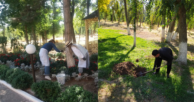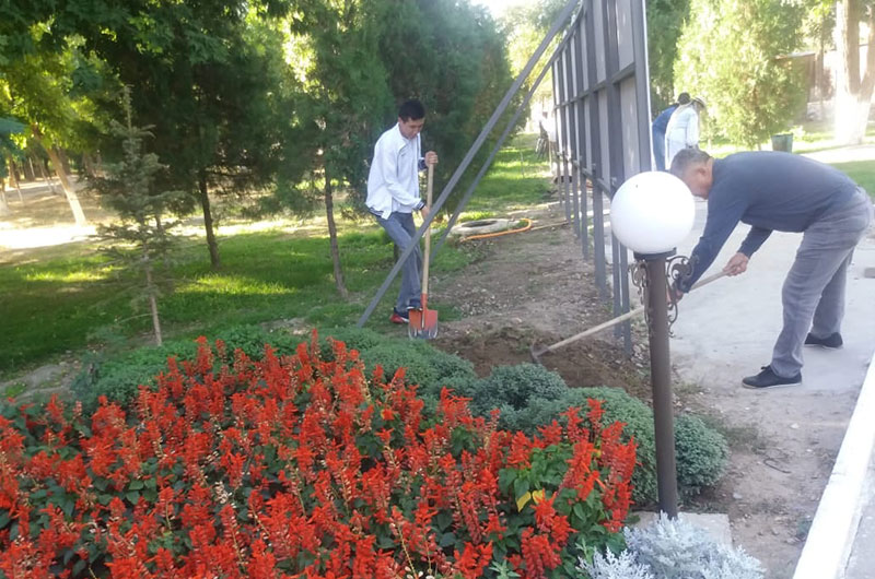 «Айша бибі» мен «Қарахан» кесенелерінің аумағында көгалдандыру, тазалық жұмыстарын жүргізу әлі де жалғасуда. Бүгін "Ежелгі Тараз ескерткіштері" тарихи-мәдени қорық-музейінің қызметкерлері біріге отырып, білек сыбана кірісіп кесенелердің аумағында санитарлық тазалау,арықтар жүйелерін тазарту, тал түптерін балақтау, әктеу, күл- қоқыстан тазарту жұмыстарын жүргізді. Енді алдағы келе жаткан 2 айдың әр аптасында сенбілік өткізу жоспарланып тұр.