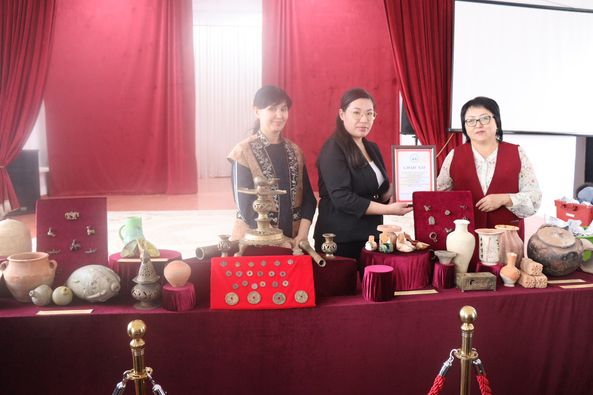 Оқушылар назарына археологиялық қазба жұмыстары нәтижесінде табылған жәдігерлер ұсынылды. Атап айтсақ, әр кезеңге жататын мәдени қабаттан табылған қыш бұйымдары мен металдан жасалған бұйымдардың мерзімін, жасалу техникасы мен пайдалану мақсатын түсіндірді. Онда VIII–ІХ ғғ. жататын соғдылық үлгіде жасалған қыш құмыра, Рим стиліндегі амфора құмырасы; зергер көмбесі, қола шырағдандар, алтын тиын (соғдылық псевдосолид), нефрит, күміс белдік жапсырмалары т.б. заттар қойылды.