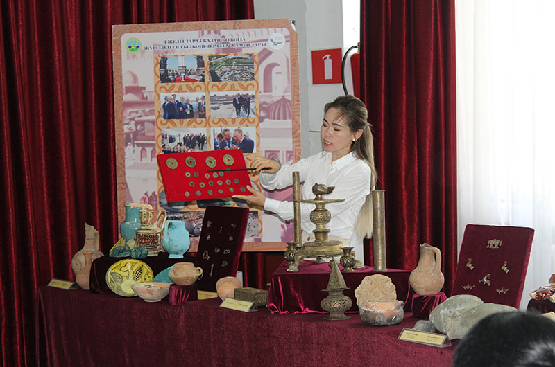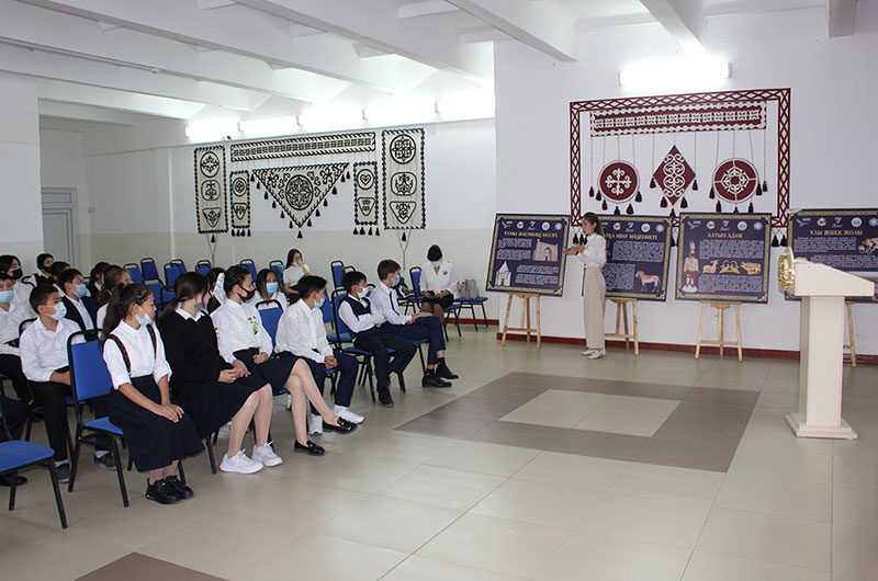 Сонымен қатар Елбасы Н.Ә.Назарбаевтың "Ұлы Даланың жеті қыры" атты қазақ халқының және қазақ даласының мәдениеті мен өркениетін тұтастай бейнелеген мақаласы біздің көрмеге арқау болды. Жәдігерлерді жақыннан көрген ұстаздар мен оқушылар өз таңғалыстарын жасыра алмай, бойларын мақтаныш кернеп, өздеріндегі ұлттық кодтарының оянғандығын айттып, бізді де бір қуантты. Музей - ұрпақтар сабақтасытығын байланыстырушы көпір іспеттес. Әрине біздің міндет бабаларымыздың мұрасын аманат етіп жеткізу, сақтау болып табылады. Іс-шара соңында мектеп басшылығы біріге отырып, облыстың тарихи-мәдени құндылықтарын одан әрмен насихаттау жұмыстарын қоян-қолтық жұмыс жасауды ұсынды. Музей ұжымына алғыс білдіріп, шығармашылық табыс тіледі.