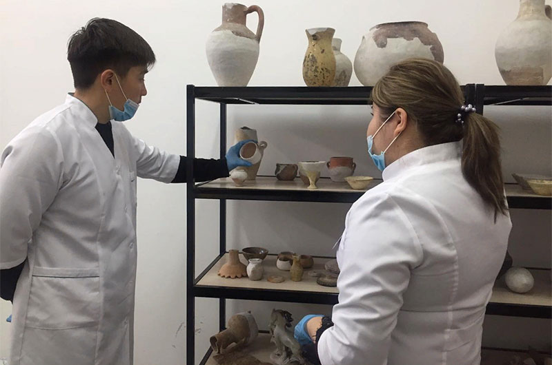 Бүгін, Жамбыл облыстық тарихи-өлкетану музейінің қор бөлімінде,  суретшілер мен қалпына келтірушілер арасында өзара тәжірибе алмасты. Тәжірибе барысында Қазақстан Республикасы Мәдениет және спорт министрлігіне қарасты «Ежелгі Тараз ескерткіштері» мемлекеттік тарихи-мәдени қорық- музейінің қалпына келтірушісі Тұтан Ержан  және Жамбыл облыстық тарихи-өлкетану музейің қалпына келтірушісі Маделиева Жаннұр тәжірбие алмасу мақсатында - құнды жәдігерлерді қалпына келтіру жұмыстары және металдармен қалай жұмыс жүргізілуі жайында өздерінің тәжірибелерімен бөлісті.