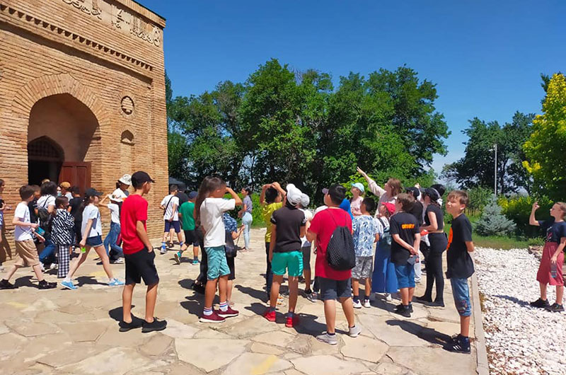 Балалардың жазғы демалысын мазмұнды ұйымдастыру мақсатында ҚР Мәдениет және спорт министрлігі Мәдениет комитетінің «Ежелгі Тараз ескерткіштері» мемлекеттік тарихи-мәдени музей-қорығының қызметкерлері қаладағы 7-ші және №13-ші мектептер жанындағы лагерьге келушілерге ұлттық тарихымыздың құнды жәдігерлерінің ерекше бір тармағы, сәулет өнерінің үздік нұсқасы «Айша бибі», «Бабаджа хатун» кесенелері, Тектұрмас этно-тарихи кешені, «Қарахан» кесенесі және «Көне Тараз» археологиялық ашық аспан астындағы саябағында танымдық экскурсия өткізді.