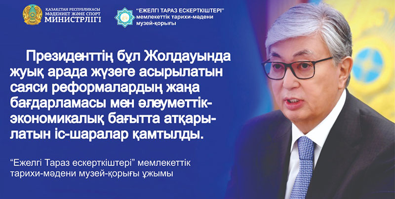 Мемлекет басшысы Қасым-Жомарт Кемелұлы Тоқаевтың «Жаңа Қазақстан: Жаңару мен жаңғыру жолы» атты Қазақстан халқына арнаған Жолдауына байланысты "Ежелгі Тараз ескерткіштері" мемлекеттік тарихи-мәдени музей-қорық ұжымы өз пікірін білдірді.