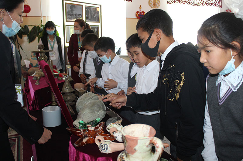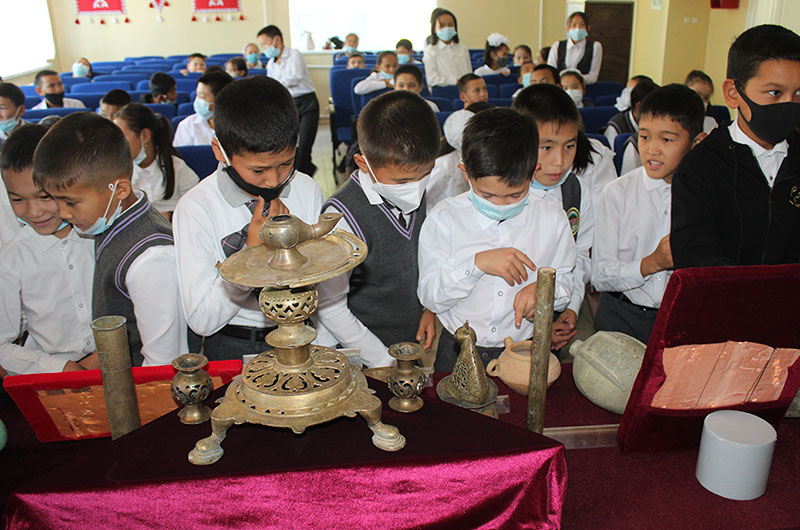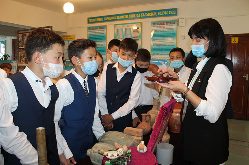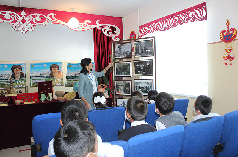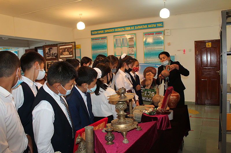 Мектеп оқушылары қорық-музейдің көрмесінде даланың ұлы ақыны туралы мазмұнды мәліметтермен танысып, ғасырлар қойнауынан бізге жеткен ежелгі Тараздың бірегей экспанаттарын тамашалады.